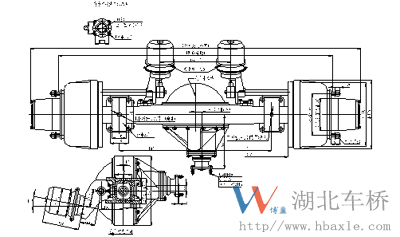 HT24F-097驅動橋總成由琵琶式整體式橋殼、主減速器總成、“S”凸輪、帶滾輪制動器總成、制動鼓及輪轂總成、全浮式半軸等件組成。它具有噪音低、運行平穩、安全系數高、制動性能好等優點。主要有以下特點: