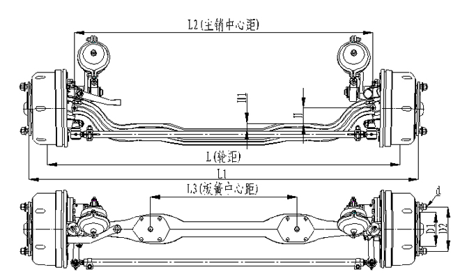 產品特點:1.前軸為整體鍛造結構,采用加強設計,承載能力強; 2.輪距、板簧距可靈活調整;3.車輪輪輞定位方式可采用球面定位或止口定位